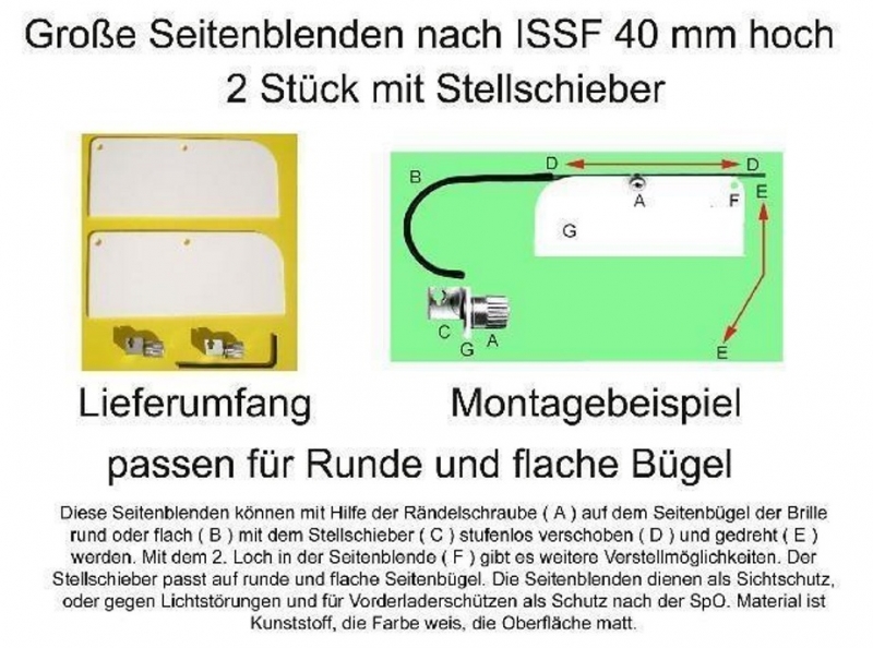 2 Stück universal Seitenblenden für Schiessbrillen weiß nach ISSF 40 mm hoch