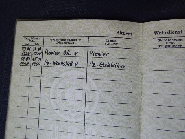 Aus meiner Sammlung gebe ich, ein Interessantes Konvolut DDR mit Wehrpässe ab. Die Teile sind im Guten Sammelwürdigen Zustand. Alles andere entnehmen Sie Bitte den Fotos. Kann zu jederzeit bei mir besichtigt werden. Privatauktion keine Rücknahme und Garantie.