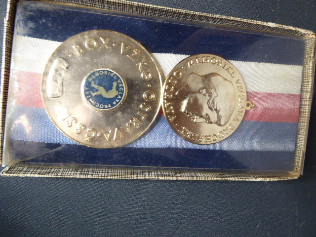Aus meiner Sammlung gebe ich, eine große Polnische Bronze Medaille in Original Schachtel und zwei andere Polnische Medaillen ab. Kenner werden es sicherlich wissen was das für Teile sind. Die Medaillen sind 8,2 und 8,1 cm im Durchmesser, alle im Guten Sammelwürdigen Zustand. Alles andere entnehmen Sie Bitte den Fotos. Kann zu jederzeit bei mir besichtigt werden. Privatauktion keine Rücknahme und Garantie.