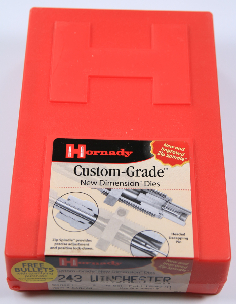 Sie bieten auf einen 243 Hornady Custom Grade Matrizen Satz Neu Orig. Verpackt. Der große Vorteil von Hornady ist, dass das Geschuß beim Setzen durch die geführte Setz Hülse nicht verkantet gesetzt werden kann.