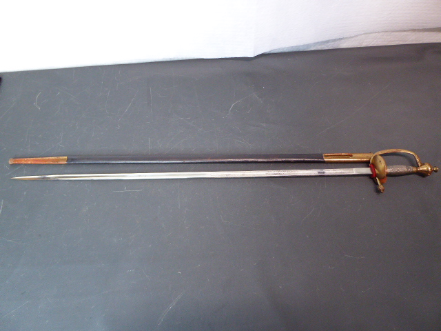 Aus meiner Sammlung gebe ich, ein alten Preußischen Beamten/Militär? Degen alte Vorm ca. 1880 Hersteller Eickhorn mit Lederscheide ab. Griff Holz mit Draht Wicklung, die schon etwas Gelötet. Gefäß Messing einseitig Anklappbar. einschneidige Klinge mit Hersteller ORIGINAL EICKHORN SOLINGEN und beidseitig mit Ätzungen. Scheide Leder, mit zwei Messingbeschläge. Das Teil ist im Guten Sammelwürdigen Zustand. Alles andere entnehmen Sie Bitte den Fotos. Gesamtlänge: 96,1 cm, ohne Scheide: 92,6 cm, Klingenlänge: 78,5 cm, Klingenbreite: 1,6 cm. Kann zu jederzeit bei mir besichtigt werden. Privatauktion keine Rücknahme und Garantie.