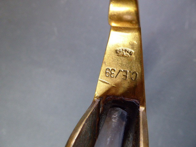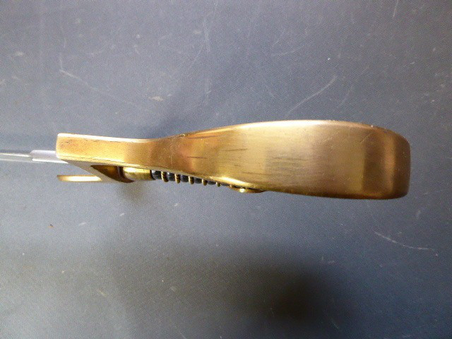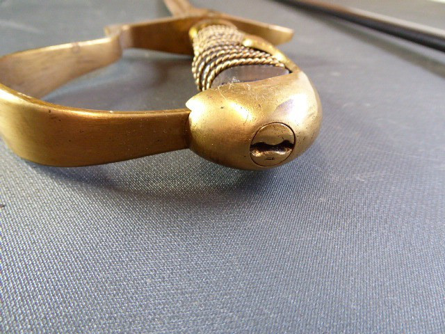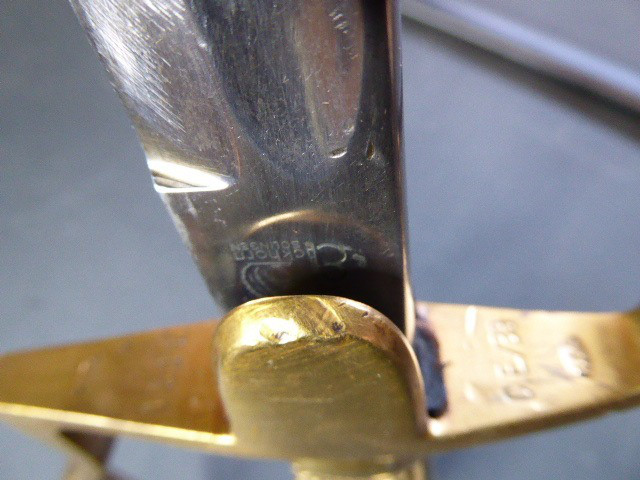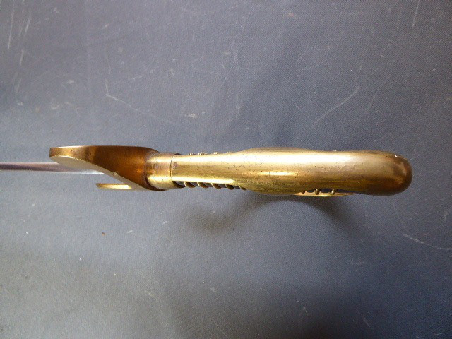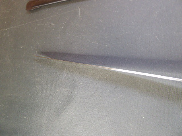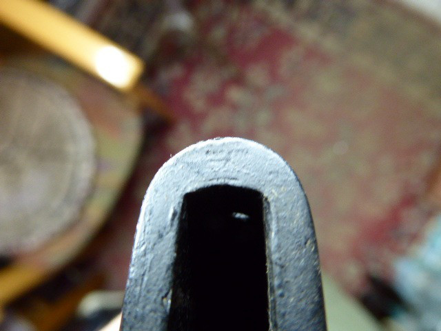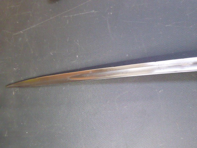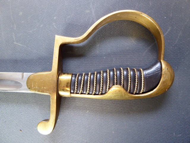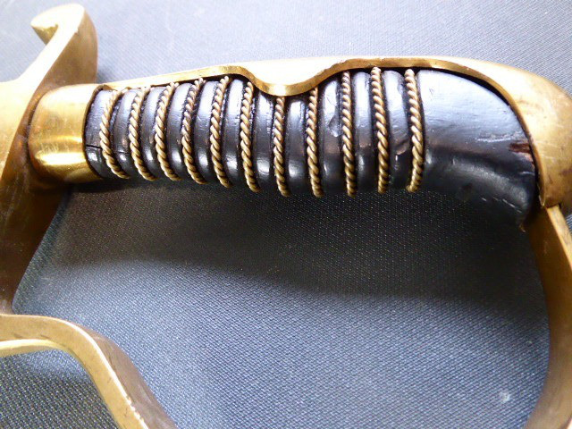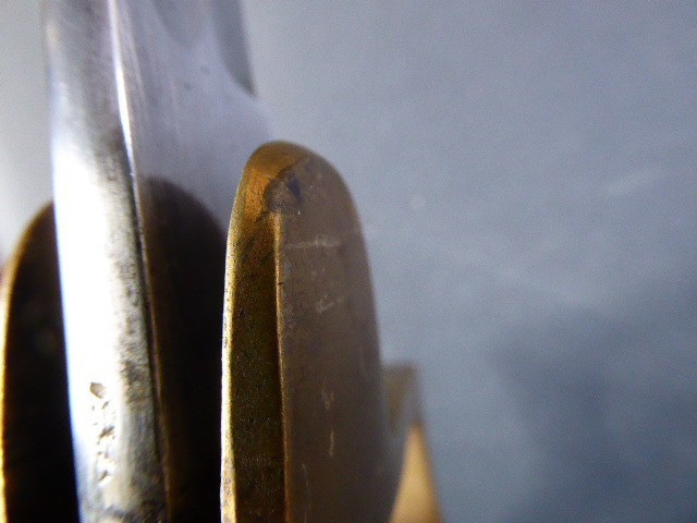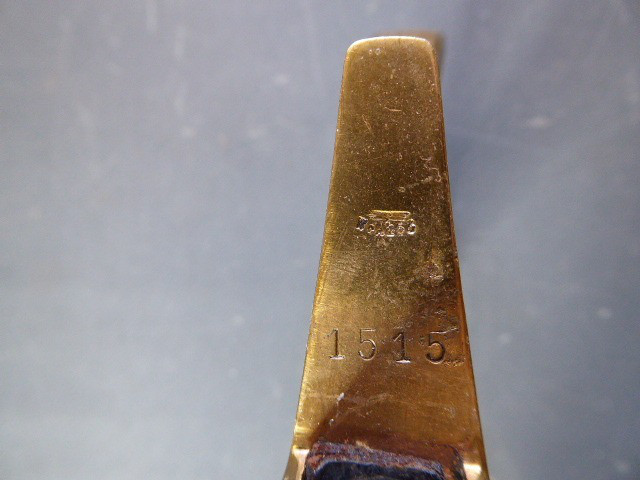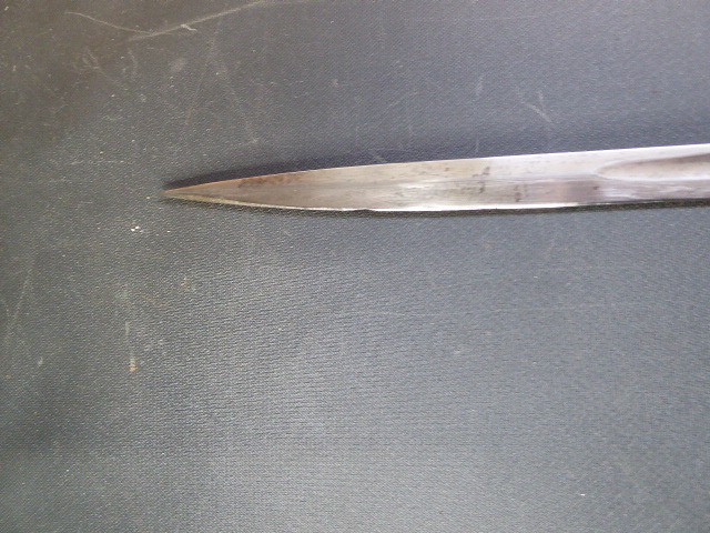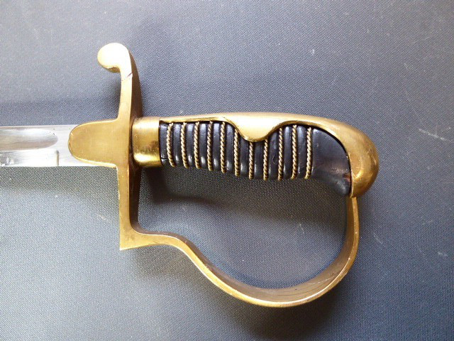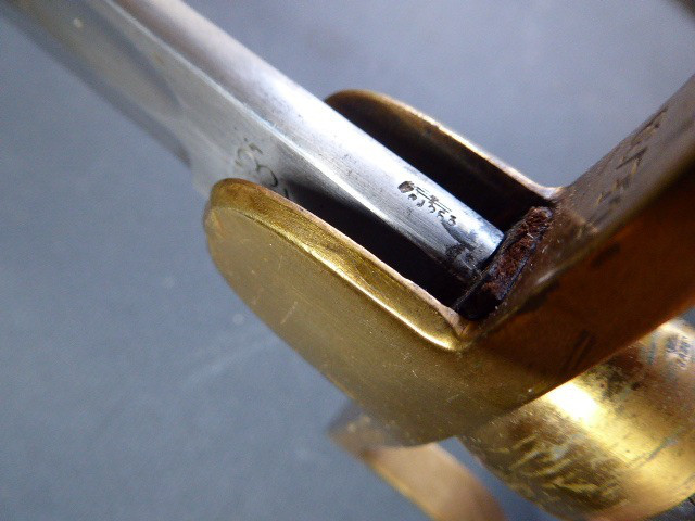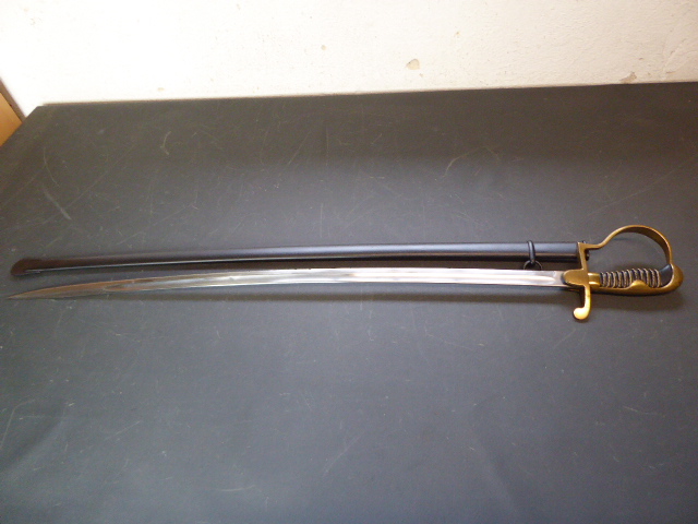Aus meiner Sammlung gebe ich, ein alten Nummerngleichen 3. Reich Kavallerie Säbel Hersteller EICKHORN SOLINGEN mit Scheide ab. Griff Holz/Horn mit einer Messingdraht Wicklung. Gefäß Messing mit Lappen, auf dem Bügel Gestempelt C.E.-39 unter Punze, andere Seite 1515 unter Punze. Einschneidige Klinge mit kleine Scharten, Hersteller EICKHORN SOLINGEN, auf dem Rücken mit Kammer Punze. Scheide aus Stahl einseitig gestempelt 1515, andere Seite C.E./39 darunter Punze, auf dem Mundblech auch noch mit Punze. Scheide wurde mal nachlackiert. Das Teil ist im Sammelwürdigen Zustand. Alles andere entnehmen Sie Bitte den Fotos. Gesamtlänge: 96,5 cm, ohne Scheide: 93 cm, Klingenlänge: 80,5 cm, Klingenbreite: 2,2 cm. Kann zu jederzeit bei mir besichtigt werden. Privatauktion keine Rücknahme und Garantie.