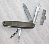 mit 7,5cm lange Klinge, hochwertige Säge mit Schutzblech, Dosenöffner, Flaschenöffner, Feile, Schraubendreher und Ahle
