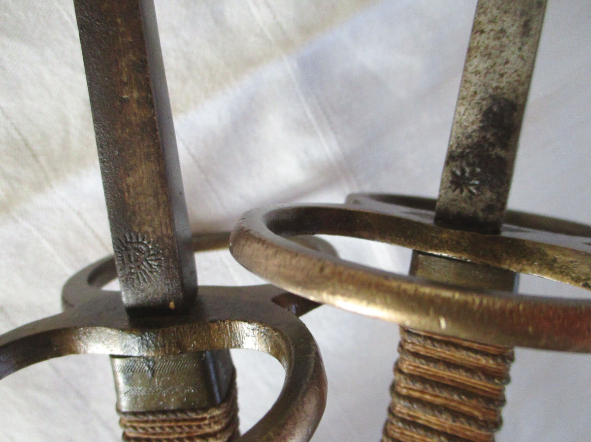 1 Paar original alte; Florett Degen Studentenschläger Stoßdegen. Signiert L.Carre beide Degen haben die Nummer 5.
