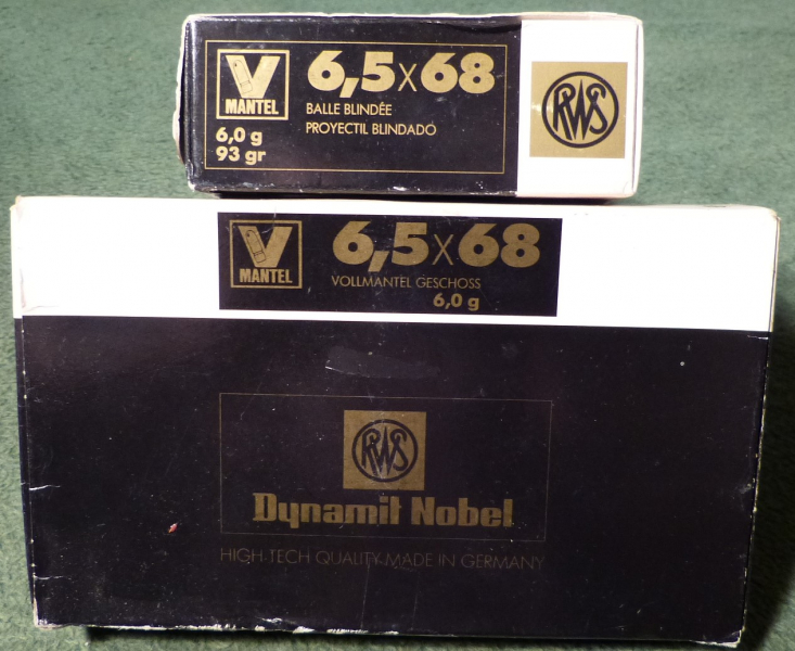 Wir bieten im Auftrag von Privat wegen Jagdaufgabe und Nachläßen ohne Garantie, Gewährleistung, Sachmängelhaftung und Rücknahme RWS Patronen im Weitschußkaliber 6,5x68 mit dem 6 g Vollmantelgeschoß aus optimaler Lagerung in teilweise originalversiegelter Verpackung an. Sie bieten hier auf 1 (eine) Packung mit 20 Vollmantelpatronen, können aber Ihren Bedarf ordern, Dieser wird dann für Sie sofort extra gelagert.