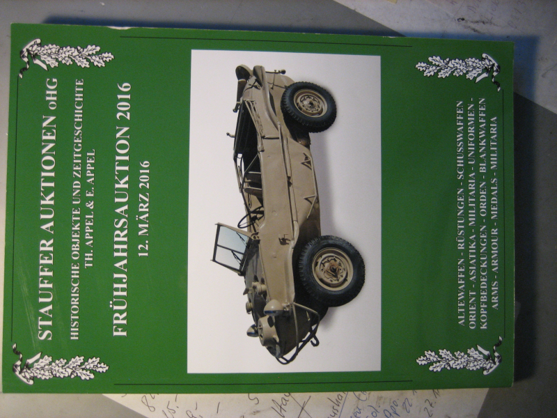 Aus Sammlungsauflösung wird ein sehr interessanter Auktionskatalog -- ** Historische Objekte und Zeitgeschichte ** -- angeboten. +++ Es ist ein Katalog der " Stauffer Auktionen oHG " - Frühjahrsauktion 12. März 2016 -- Auf 139 Seiten gibt es für alle angebotenen Artikel -- Lang-/Kurzwaffen - Uniformen - Orden/Ehrenzeichen etc. -- eine Kurzbeschreibung mit Gebotspreis - als Kopie gibt es dazu noch eine Liste der bei der Auktion erzielten Ergebnissen -- Für jeden angebotenen Artikel gibt es ein farbiges Foto. ++ Bezüglich der eingesetzten Artikel gibt es leider keine Stück-/Seitenzahl. +++ Das Buch ist ungelesen und befindet sich in einem Bestzustand.absolut neuwertig +++ Format 29 x 20 cm +++ Der Versand erfolgt mit DHL (unversichert). Die Versandkosten gelten nur für Deutschland. Bieter aus dem Ausland bitte Versandkosten vor Gebot erfragen. Versandrabatt möglich, sehen Sie auch meine anderen Angebote. Privatverkauf, daher keine Gewährleistung, Garantie oder Rücknahme. Bei Fragen einfach mailen.