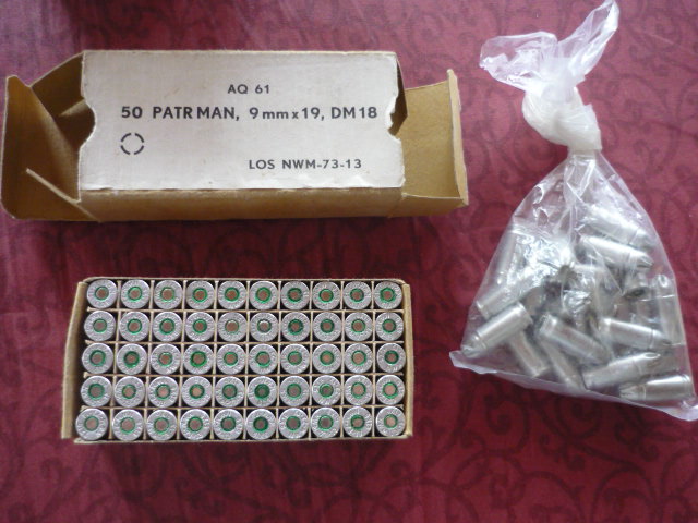 biete hier diese 50 Schuss Sammlermunition 9mm incl. Verpackung an.Die in der Tüte gibt es gratis dazu. Über das Alter kann ich nichts sagen.