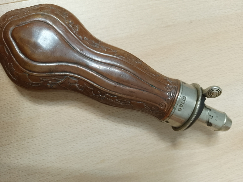 Hallo, biete eine alte Pulverflasche an.Herkunft und für welchen Vorderlader sie ist entzieht sich meiner Kenntnis.