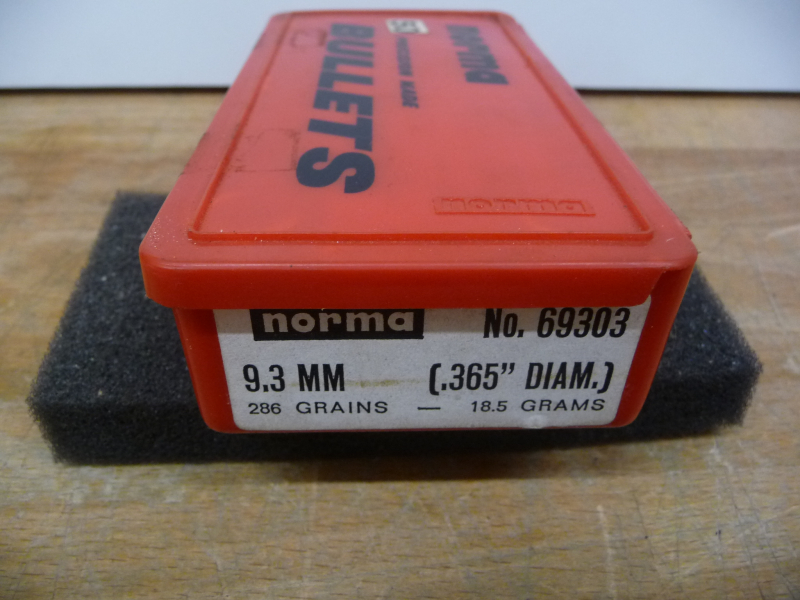 Hier wird z.B. eine geschlossene Packung mit 50 Stück Norma Geschossen 9,3 mm, 286 grain angeboten.