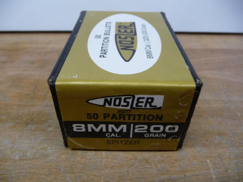 Hier wird z.B. eine geschlossene Packung mit 50 Stück Nosler Geschossen, 8 mm / .323, 200 grain, Partition angeboten.