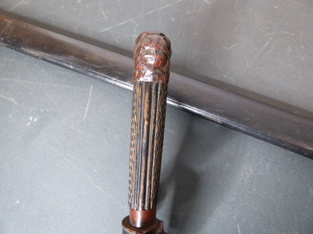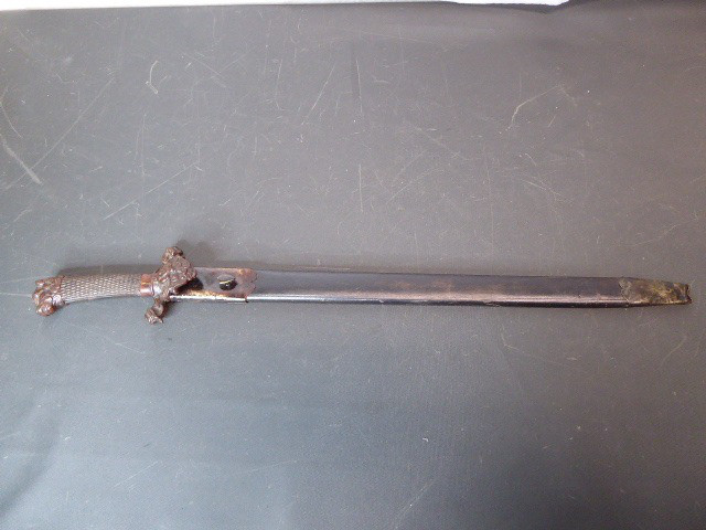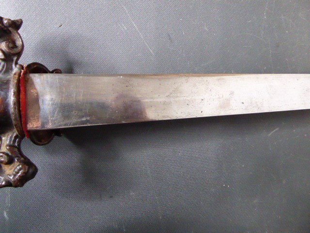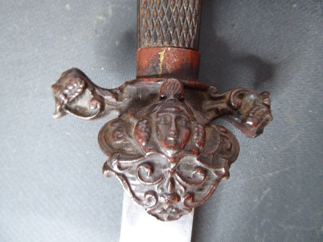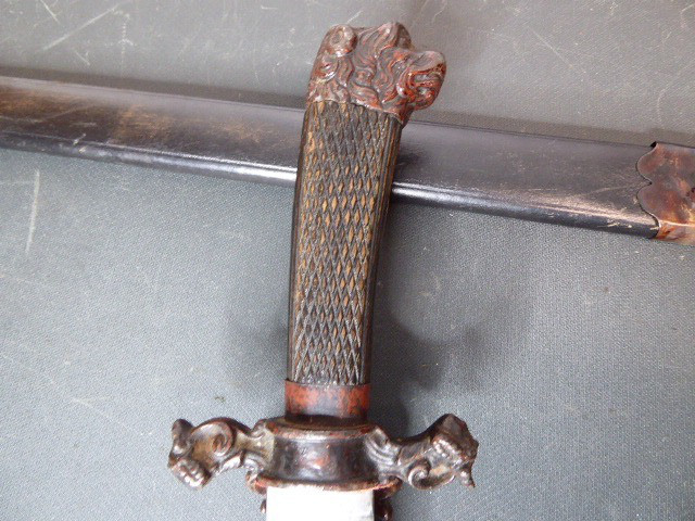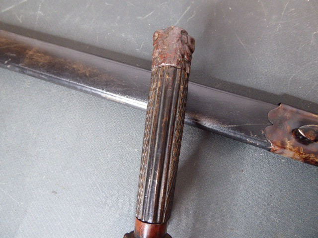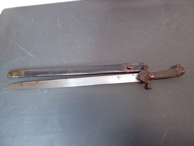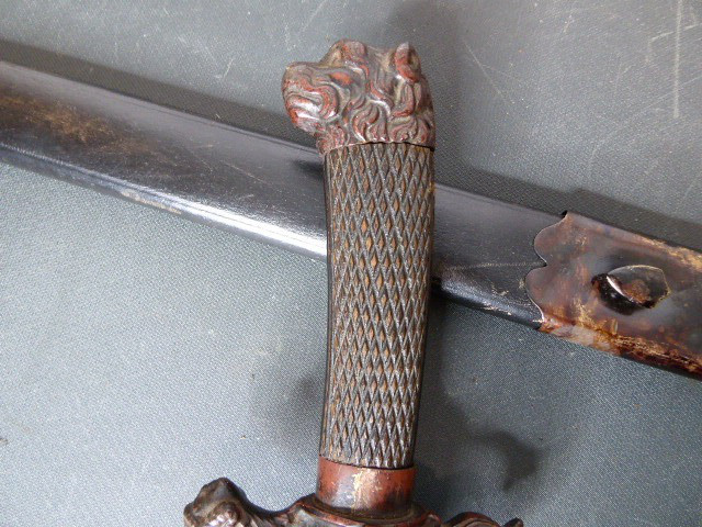 Alter langer Interessanter Hirschfänger mit Löwenkopf ca.19. Jhd. mit Scheide