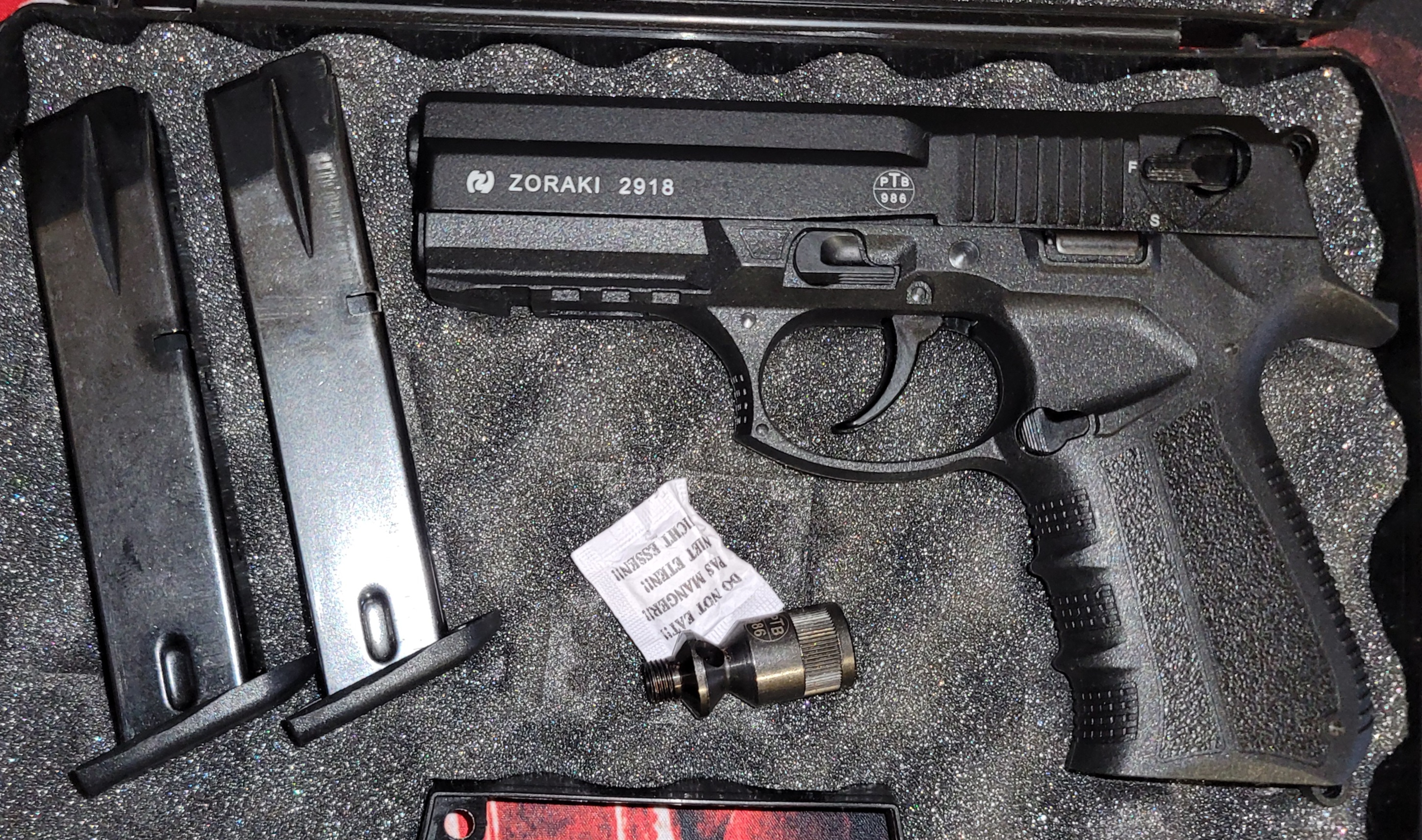 Der Zoraki 2918 Pistole in 9mm P.A.K mit der PTB Nr 986. Die Waffe ist ungeschossen und in einem super Zustand.