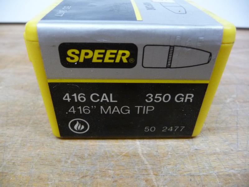 Hier wird z.B. eine geschlossene Packung mit 50 Stück Speer Geschossen, .416, 350 grain, MagTip angeboten.