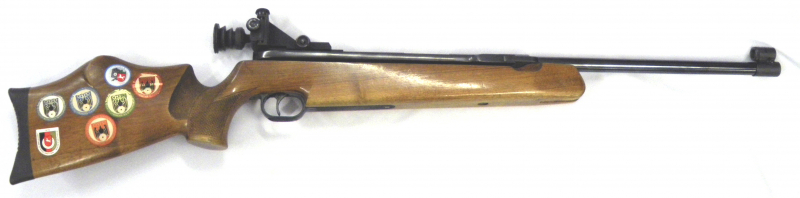 Die Waffe ist gebraucht, es sind leichte Gebrauchsspuren vorhanden und auf dem Schaft sind Aufkleber angebracht.