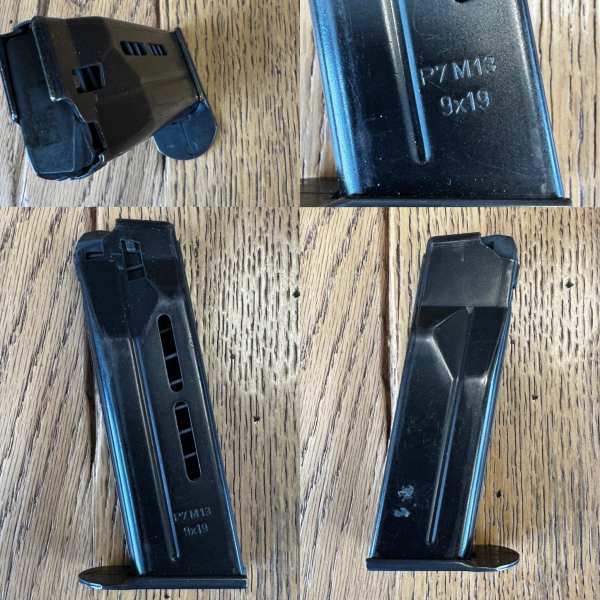 Originales Magazin für die Heckler & Koch Legende P7 M13, 9mm Luger, Blechgeprägt und originalteil.