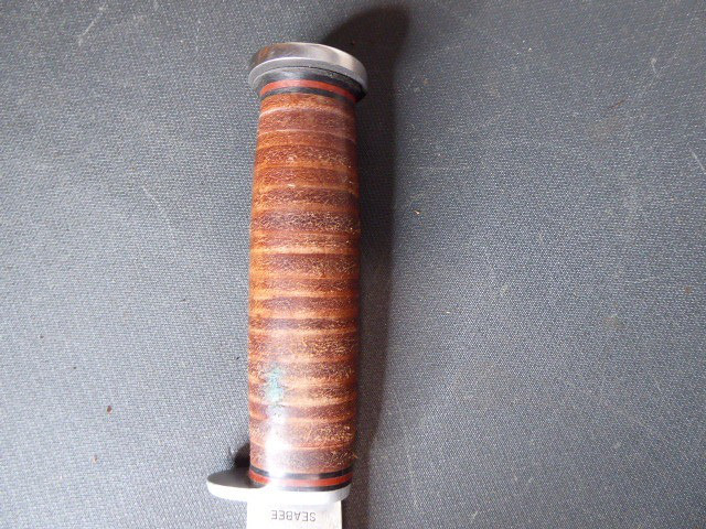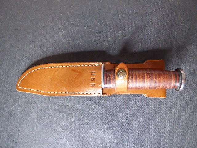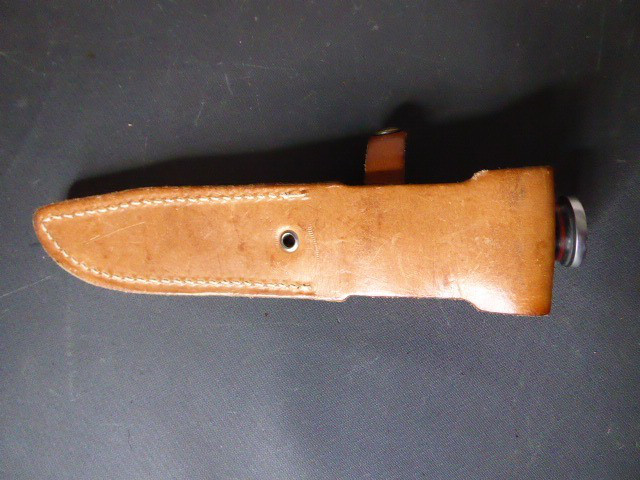 Aus meiner Sammlung gebe ich, ein altes Amerikanisches Bowie Messer Hersteller WESTERN USA ULA 71 mit Lederscheide ab. Griff aus Lederscheiben. Parierung und Knauf aus Eisen. Stabile einschneidige Klinge mit Hersteller WESTERN USA ULA 71. Scheide Leder mit Intrigierter Trageschlaufe, gestempelt USN. Kenner werden es sicherlich wissen wo das Teil getragen wurde. Das Teil ist im Guten Sammelwürdigen Zustand. Alles andere entnehmen Sie Bitte den Fotos. Gesamtlänge: 25,5 cm, ohne Scheide: 23,5 cm, Klingenlänge: 12,5 cm, Klingenbreite: 2,7 cm. Kann zu jederzeit bei mir besichtigt werden. Privatauktion keine Rücknahme und Garantie.