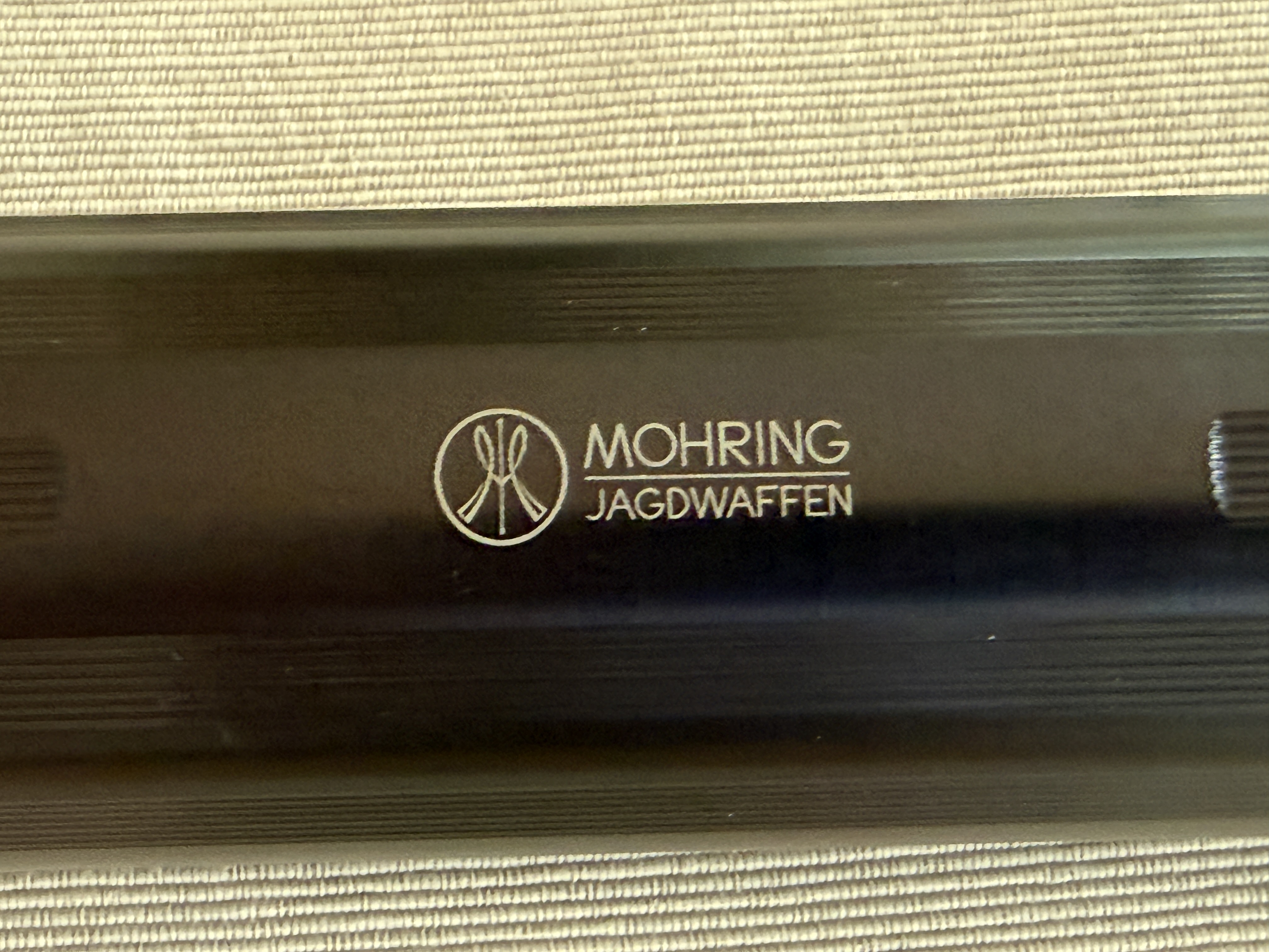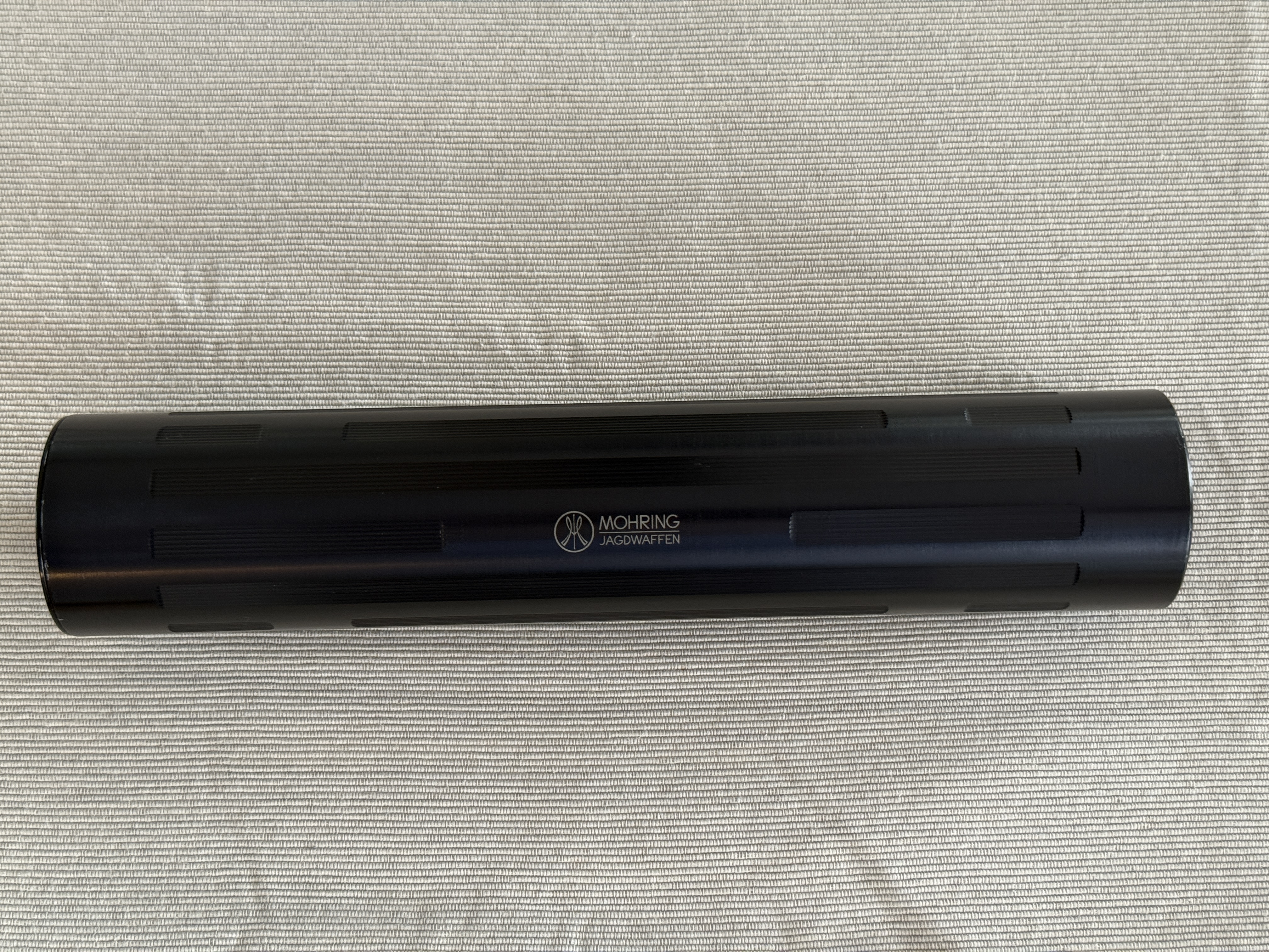 Schalldämpfer Fa. Mohring mit Überzieher Fa. AKAH, Max. 8mm, hatte ich auf einer Mauser M12 im Kaliber 8x57, 15/1, dadurch sehr angenehmes Schussverhalten. 478 gr., 24,8 cm lang, 5 cm im Durchmesser. Etwa 5 cm „over-barrel“, der Schalldämpfer verlängert den Lauf um knapp 19 cm. Mäßige Schussbelastung. Keine Garantie, oder Gewährleistung durch den Verkäufer. Verkauf nur an EWB. Besichtigung vor Auktionsende wird angeboten und ist erwünscht. Abholung in 23879 Mölln ist möglich und wird bevorzugt.