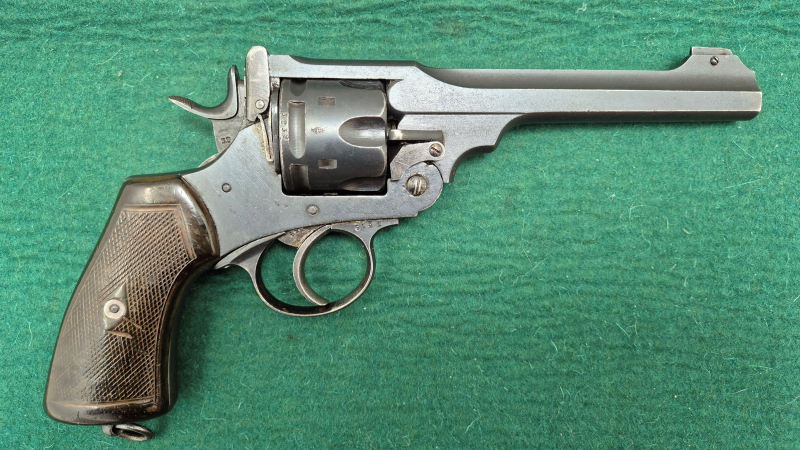 Revolver Webley MK VI 6“, Kal .455 Webley, soweit ersichtlich nummerngleich, original nicht überarbeitet, Lauf blank