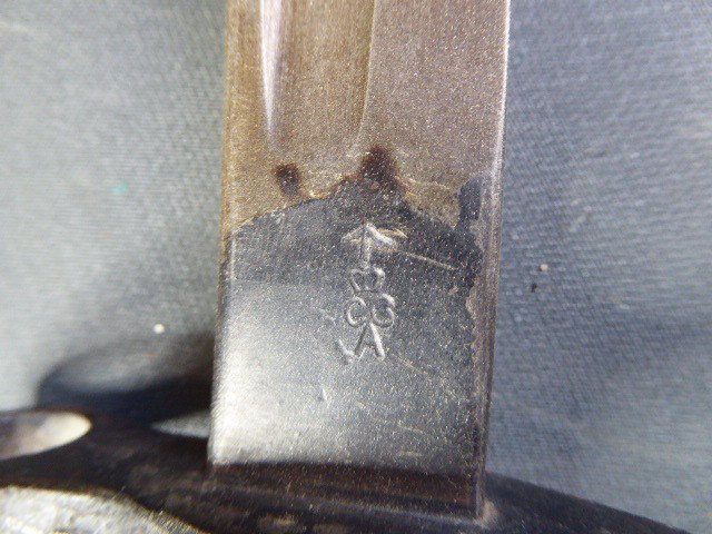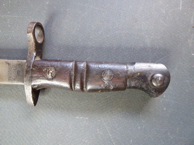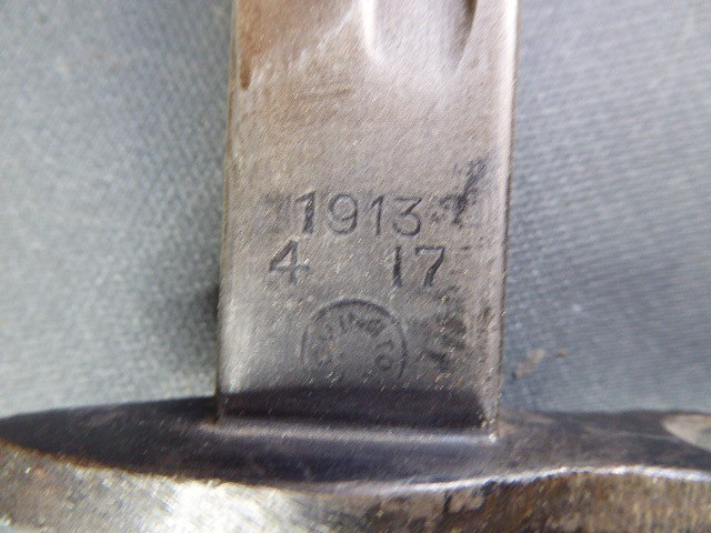 Ein Netter eGuner hat geschrieben, das es sich bei dem Bajo, um altes Amerikanisches Bajonett M/1913 vom April 1917 handelt.