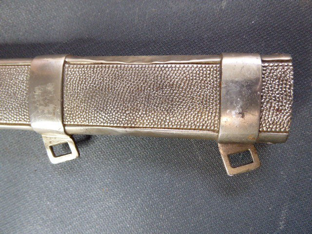Aus meiner Sammlung gebe ich, eine Originale Scheide für den DRK Führerdolch als Ersatzteilspender ab. Das Teil ist etwas im Rücken gekniffen und es fehlt das Mundblech, deshalb als Ersatzeilspender. Alles andere entnehmen Sie Bitte den Fotos. Scheide: 26,3 cm. Kann zu jederzeit bei mir besichtigt werden. Privatauktion keine Rücknahme und Garantie.