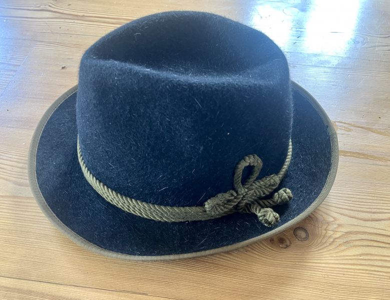 Trachtenhut aus schwarzem Feinloden, gedrehte Wollhutschnur vierfach, ledernes Schweissband, Marke Dalton Hat, Grösse 57...