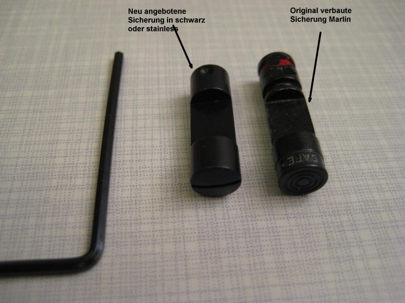 Passend für eine Marlin (hiervon betroffen sind neuere Marlinversionen, da die älteren Modelle keine Sicherung besitzen) passend in die Modelle 1894 CB oder 1895 oder 336 auch evt. 444. Passt leider nicht auf 39A da dünnere Sicherungen verbaut sind.