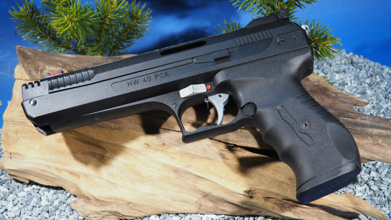 Das Modell HW 40 PCA von Weihrauch ist eine hochwertige Luftpistole, die mit vorkomprimierter Luft schießt. Daher entfällt der Prellschlag einer Kolbenfeder und durch diese sehr ruhige Schußabgabe ist eine wesentlich höhere Präzision möglich als bei herkömmlichen Knickern !