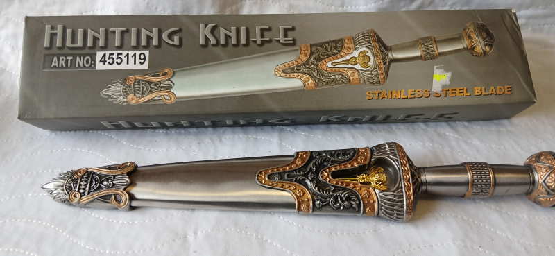 Aus einer Sammlungsauflösung wird ein Messer Hunting Knife von Linder angeboten. Zustand neu , ungeschliffen , Klingenlänge ca.50 cm , Stainless Steel Blade . Der Verkauf erfolgt von Privat ohne Garantie/Gewährleistung und Rücknahme.