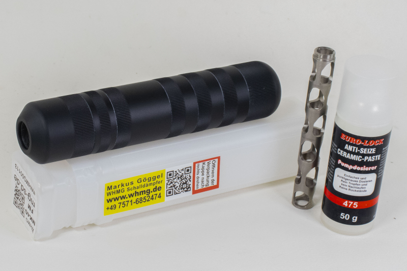 Verkauft wird ein WGMG MK 40 FM Multikaliber Schalldämpfer mit 8,5mm und 9,5mm Kalibereinsätzen.