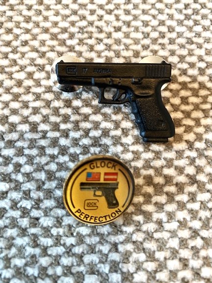 Ich biete hier zwei PINs der Firma GLOCK an. Ein goldfarbener PIN mit der Aufschrift GLOCK-PERFEKTION sowie österreichischer und amerikanischer Flagge und ein PIN mit einem schwarzen Modell der GLOCK-Pistole. Privatverkauf ohne Garantie, Gewährleistung oder Rückgaberecht. Der Versand erfolgt im unversicherten Päckchen und beträgt 4,50 Euro. Auf Wunsch auch versichert mit Sendungsnummer für 10,- Euro Versandkostenpauschale innerhalb Deutschlands. Der EU-Versand erfolgt grundsätzlich versichert und mit Sendungsnummer für 22,- Euro.