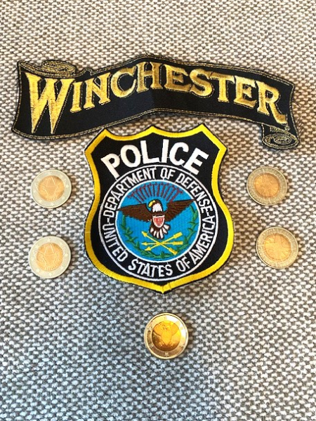 Ich biete hier eine neuen , goldgestickten Aufnäher der US-Firma WINCHESTER, einen neuen Aufnäher des US-Police Departement of Defense und fünf Spielgelddollars (2 x Kompass, 2 x Adler und 1 x Eule) an. Privatverkauf ohne Garantie, Gewährleistung oder Rückgaberecht. Der Versand erfolgt im unversicherten Päckchen und beträgt 4,50 Euro. Auf Wunsch auch versichert mit Sendungsnummer für 10,- Euro innerhalb Deutschlands. Der EU-Versand erfolgt grundsätzlich versichert und mit Sendungsnummer für 22,- Euro.