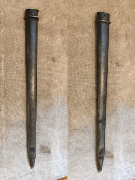 Hier eine Scheide für ein französisches Berthier Modell 1892, original Stück mit altersbedingter Patina, keine Roststellen, jedoch mit Dellen im unteren Bereich beidseitig!!;