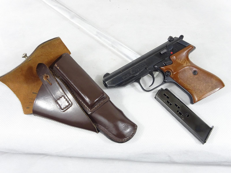 Gesamtlänge: ca.176mm. Lauflänge: 91mm. Gewicht: ca. 765g. Magazin für : 7 Patronen Kal. 9 x 18 Ultra / 9mm Police. Pistolen dieses Typs waren bei der Landespolizei Bayern und Rheinland-Pfalz im Gebrauch.