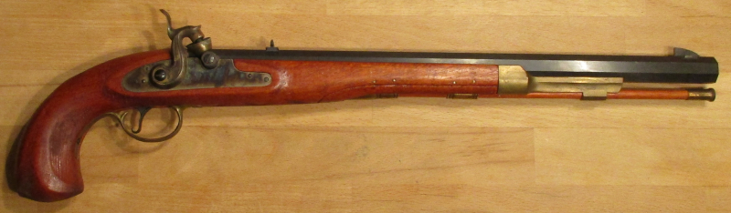 Die Waffe ist für eine Handfeuerwaffe sehr lang (fast 55cm) und schwer. Beschusszeichen sind vorhanden und lesbar. Der Hahn rastet gut ein. Der Lauf hat vorne links an der Oberfläche eine Beschädigung (siehe Foto). Der Anschafungspreis liegt bei ca. $800 (mit einem schöneren Schaft), siehe https://muzzle-loaders.com. Weitere Fotos auf Nachfrage