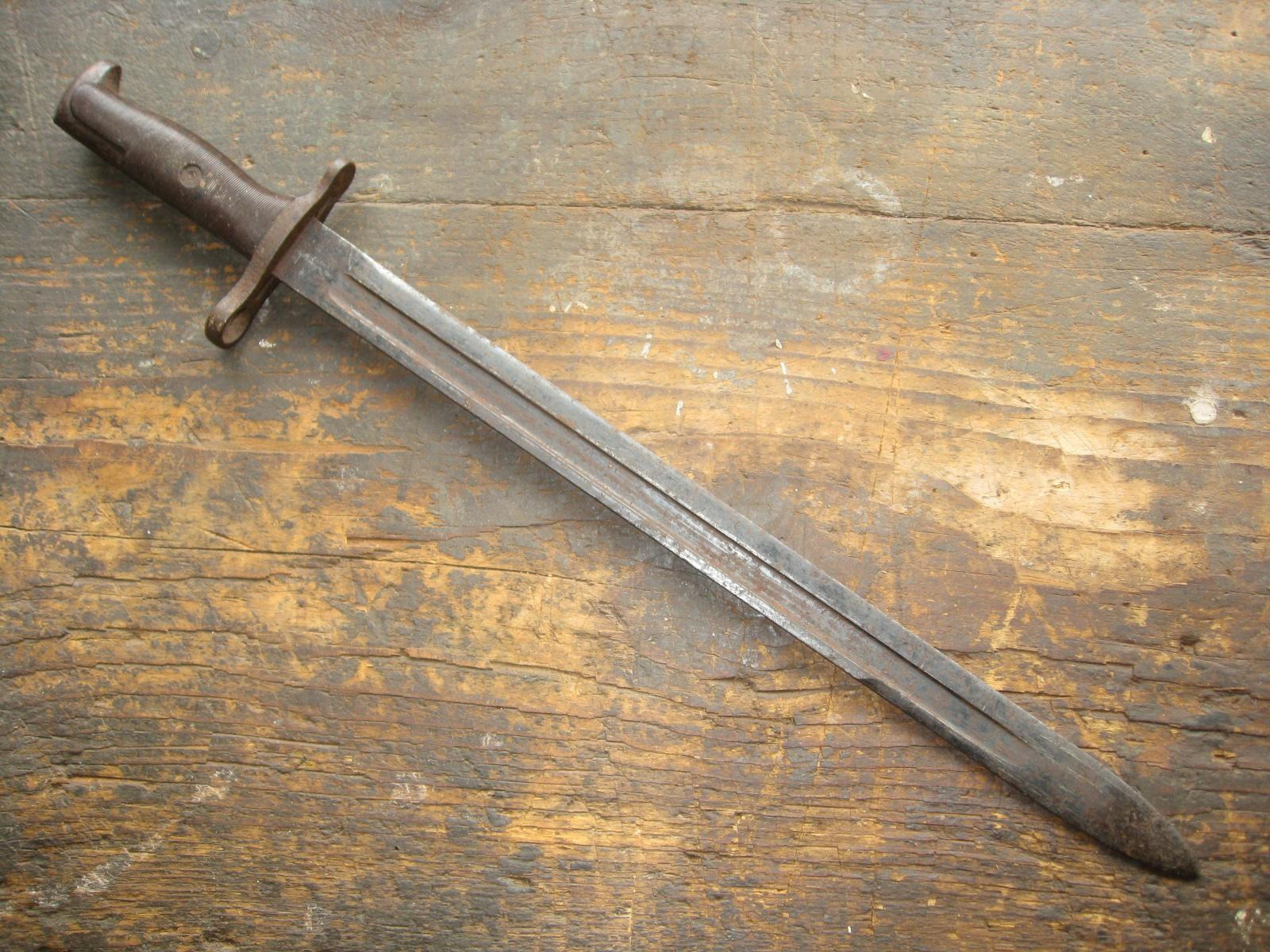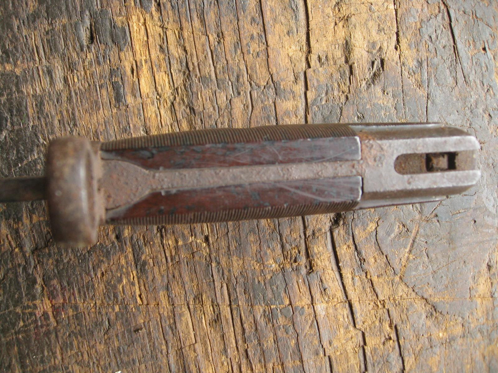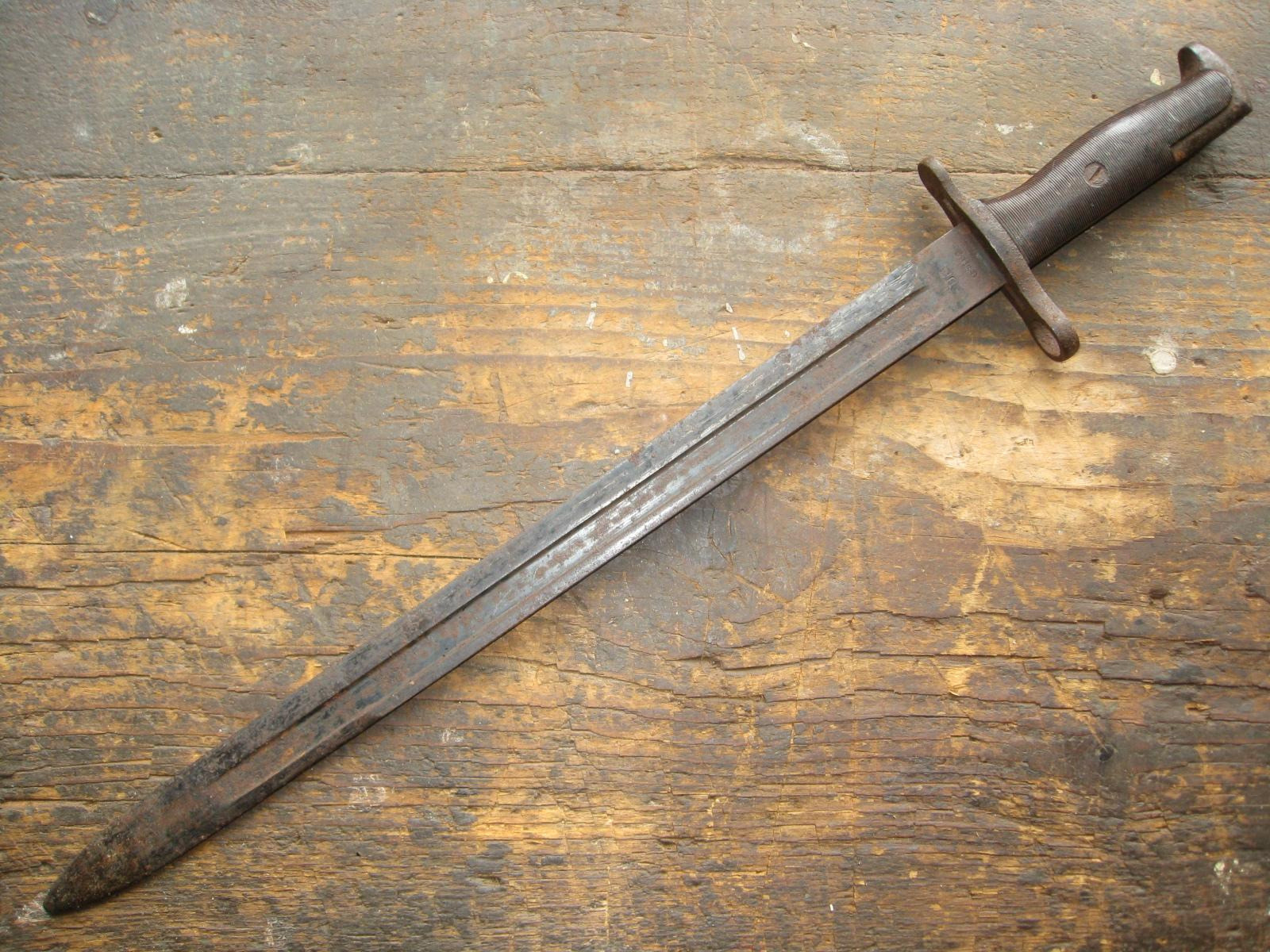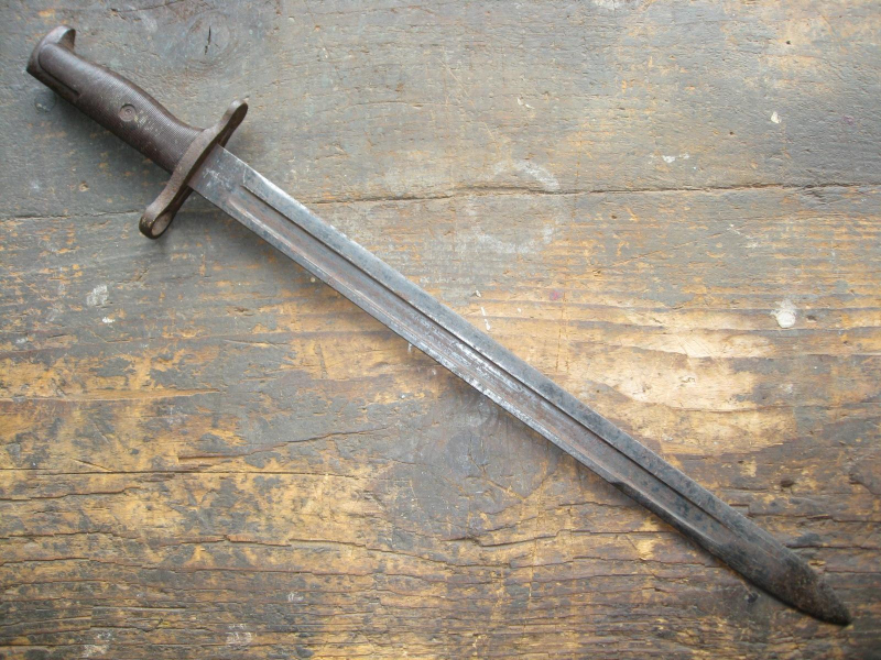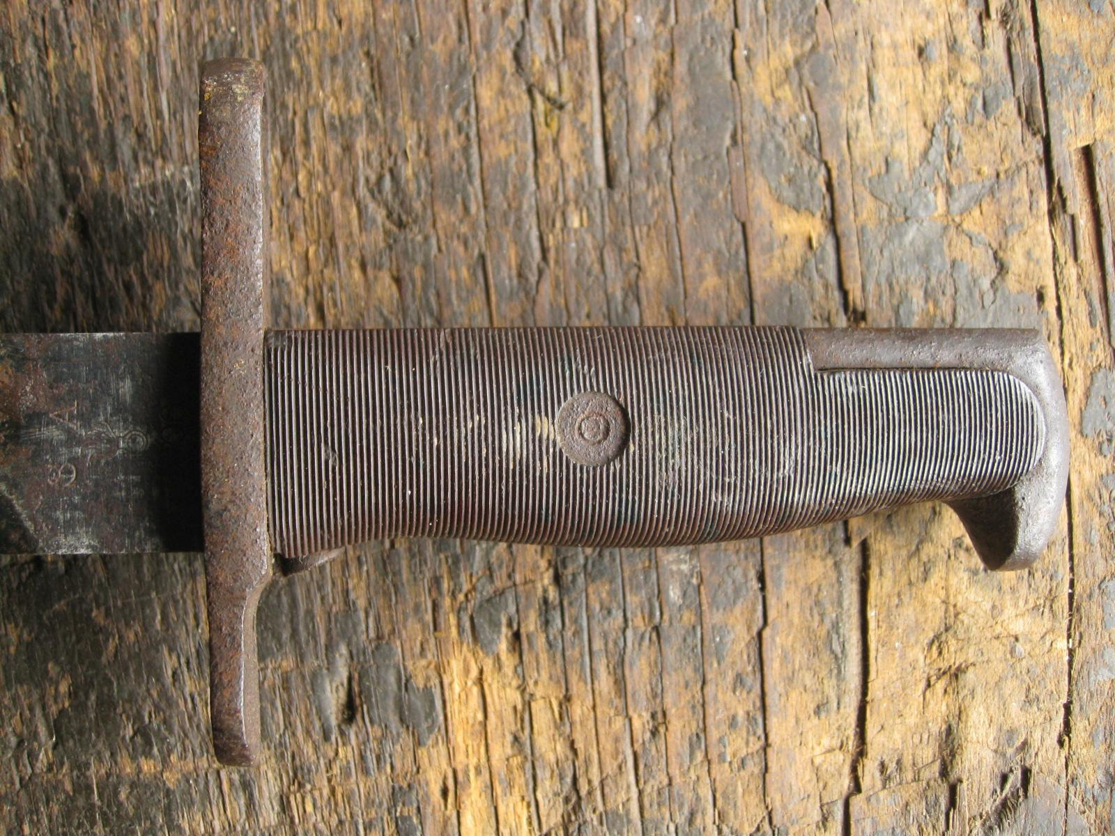 Ich versteigere einen U.S. Bajonett M1905 (M1942) mit einem frühen rot-braunem Griff aus Phenol-Formaldehydharz