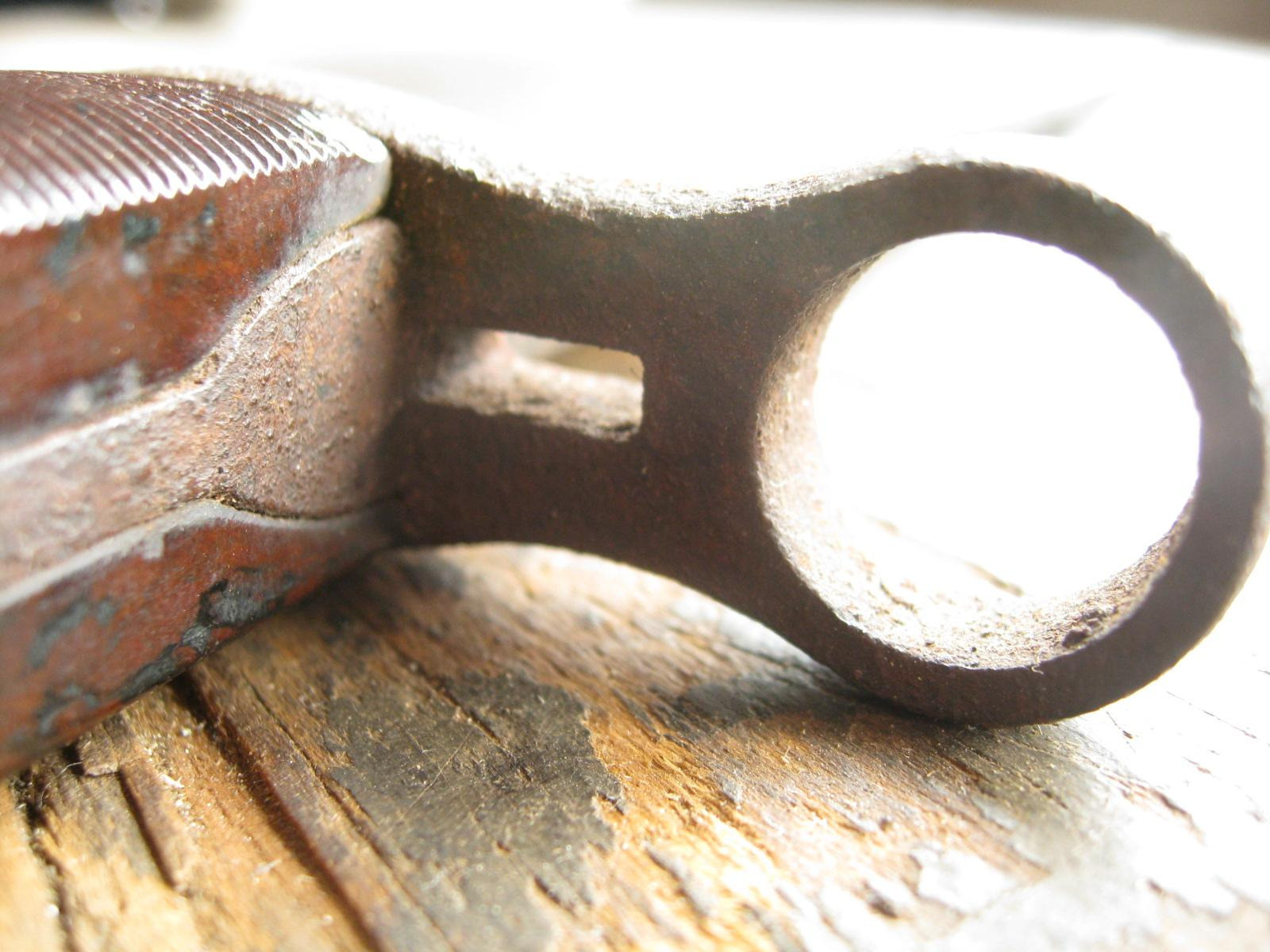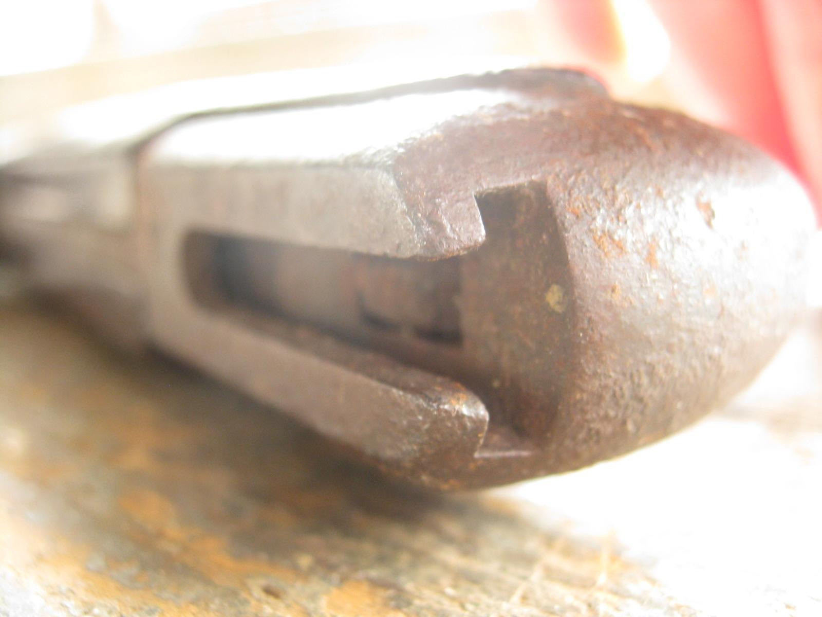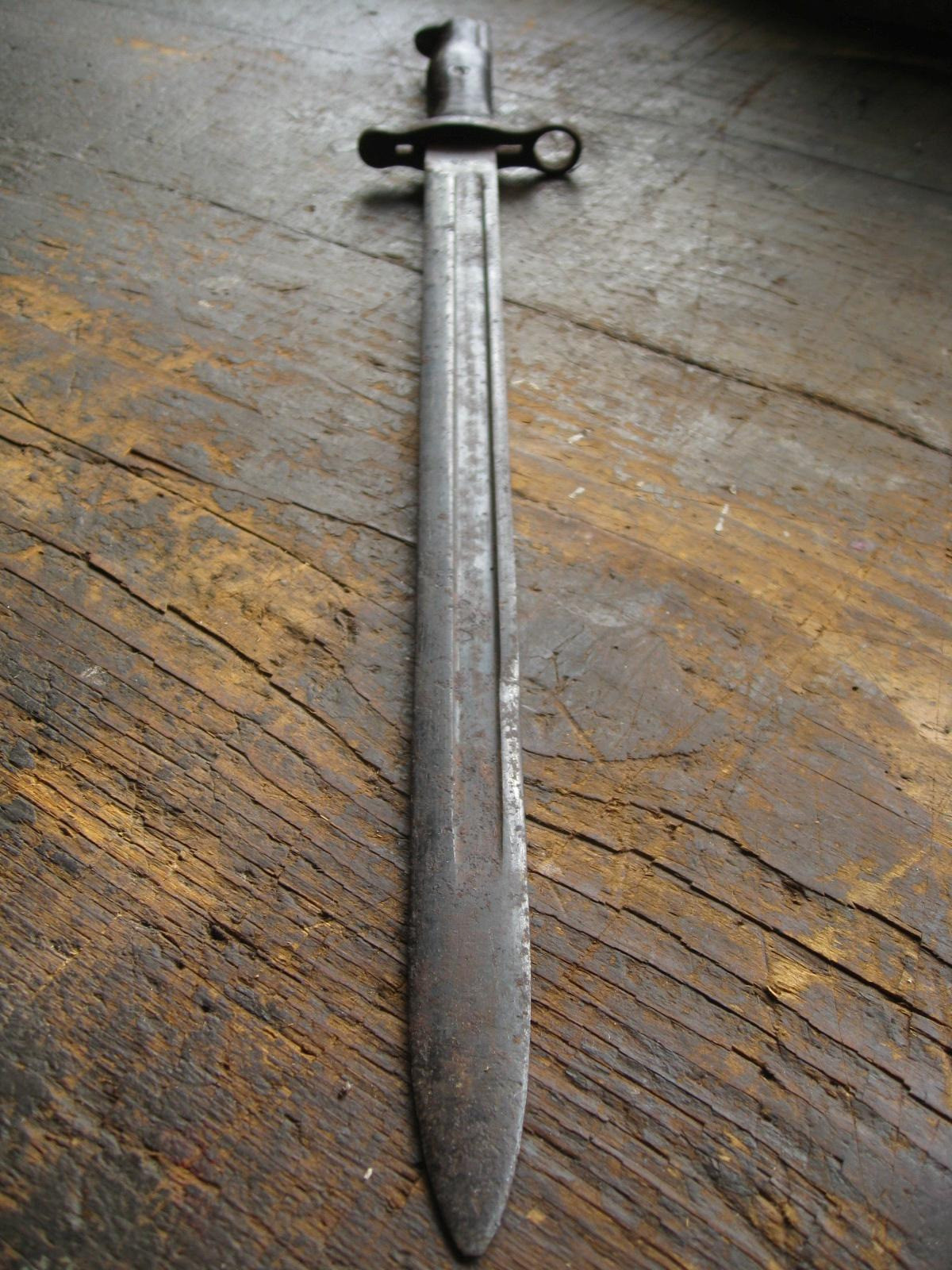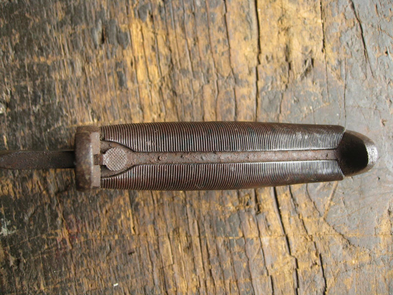 Ich versteigere einen U.S. Bajonett M1905 (M1942) mit einem frühen rot-braunem Griff aus Phenol-Formaldehydharz