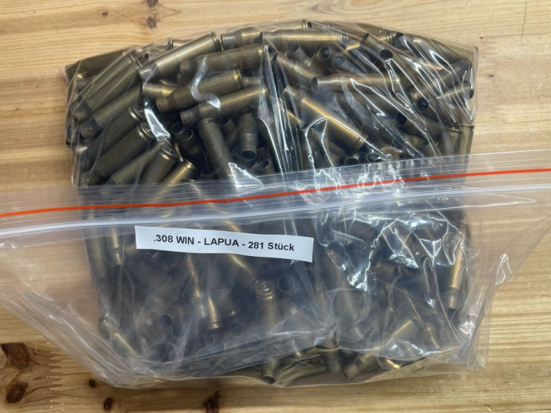 Zum Verkauf stehen 281 Stück Hülsen .308 WIN der Marke Lapua.
