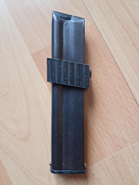 Verkaufe 1 ERMA M1 15-Schuß-Magazin mit kurzem Haltekörper. Nutze das nicht, sondern benötige stattdessen ein 10-Schuß - Magazin. Es hat nach meinem Verständnis leicht Gebrauchsspuren - aber das interpretiert ja jeder anders. Es passen 16 Patronen hinein, läßt sich leicht lasen und transportiert die Patronen in meiner Erma tadellos. Habe es einmal ausprobiert, ansonsten nicht genutzt.