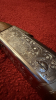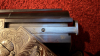 - Farbeffekt: Der Receiver ist nickel- oder silberfarben (vermutlich brushed nickel oder coin finish), die Gravur selbst ist goldfarben (vergoldet oder hochpoliert), was den Kontrast erzeugt. Teilweise bläuliche Akzente (z. B. im Schilf/Hintergrund) – das könnte durch leichte Bluing oder Patina kommen, oder es ist ein subtiler Farbeffekt in der Gravur.