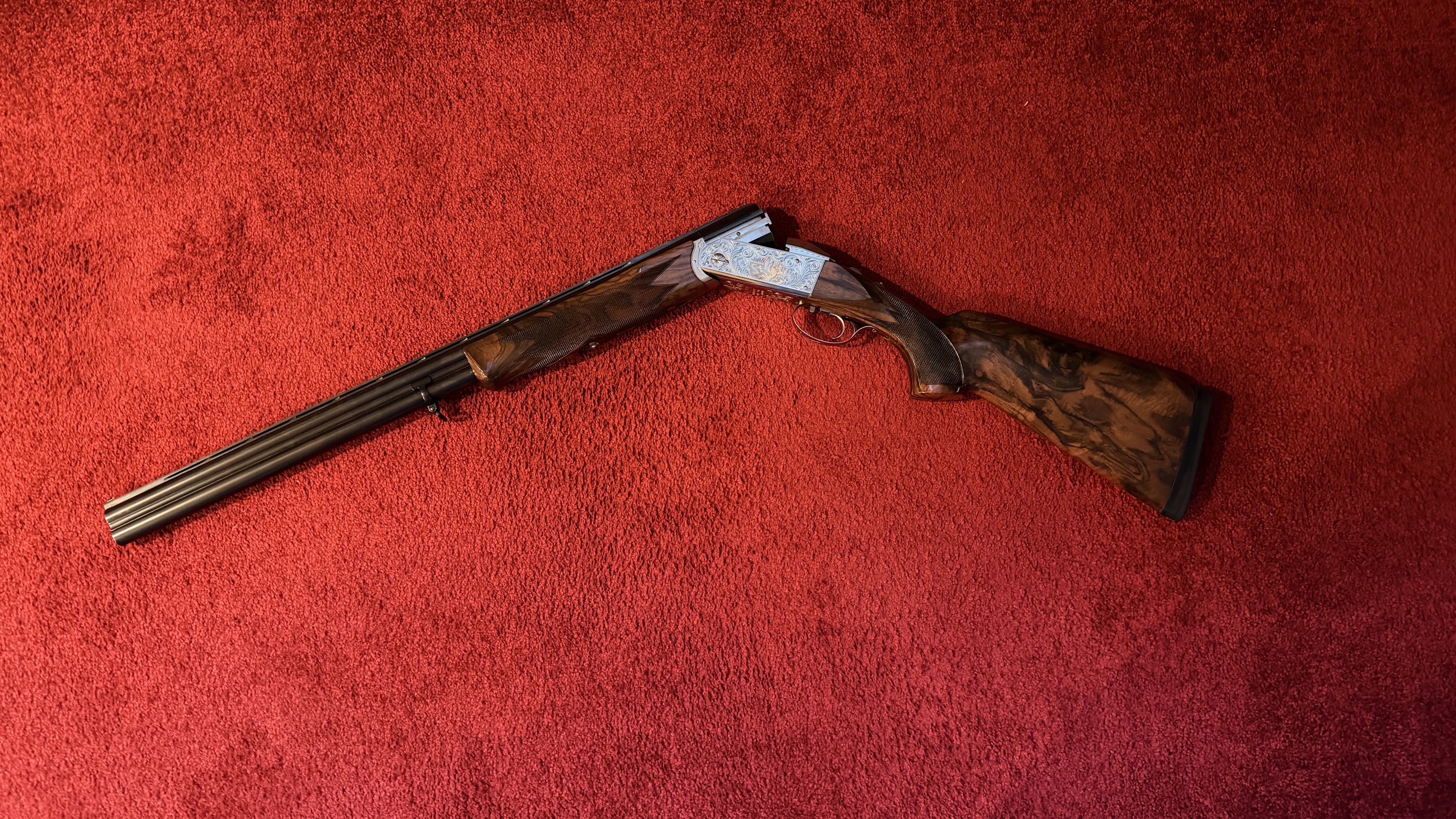 - Mit Seriennummer 12952 (1983-ish), 71 cm fixed Chokes (1/4 & 3/4), premium burl/flame-Holz (CAT 3–4+), handgefertigter Duck-Scene-Gravur und sehr gutem Zustand (aus Fotos: tight action, saubere Innenteile, kein sichtbarer Rost/Verschleiß im Receiver):