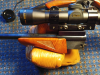 1x 22lr mit verstellbarer Kimme und Korn und 1x .222 Rem. mit ZF Monarch UCC ,(2,5-8), jeweils mit Vorderschaft