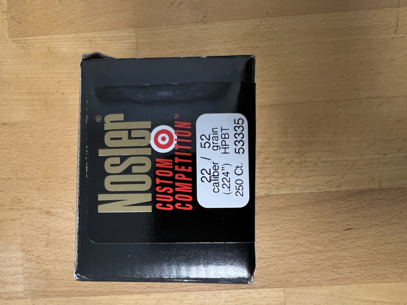 Wegen Aufgabe aus Altersgründen verkaufe ich orginalverpackt 250 Schuss Nosler cal. .22/.224 in 52 grain Art. 53335