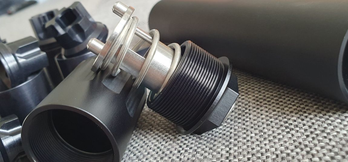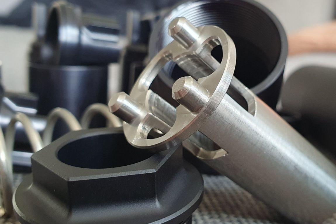 Als Material wurde schwarz eloxiertes, hochfestes 7075 Aluminium (wird auch bei der Raumfahrt und hochqualitativen Ar15 verwendet) und Edelstahl im Booster benutzt.