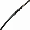 Das Habaki ist aus Messing. Die Saya ist aus Holz, glänzend schwarz lackiert und verfügt über ein schwarzes Sageo sowie Kojiri, Kurigata und Koiguchi aus Rinderhorn.