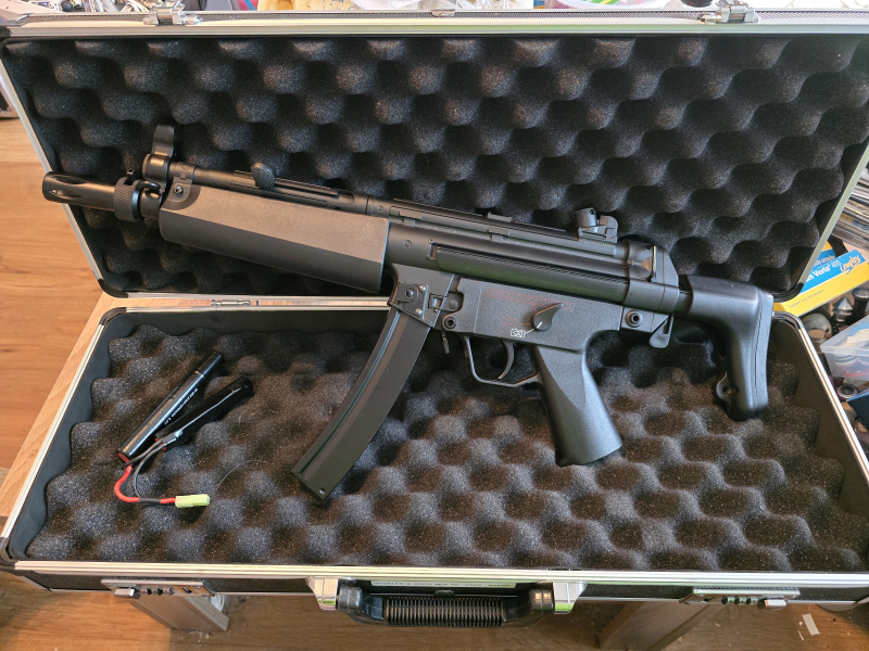 Hallo, biete hier eine Heckler&Koch MP5 A5 in 6mmBB in der AEG version. Unter 0,5j, hat Fullauto. Die waffe ist aus Metall und Kunststoff teilen, hat ein sattes Gewicht. Es funktioniert einwandfrei, Schaft ist verstellbar. Waffenkoffer ist inklusive. Akku ist dabei, anleitung auch. Sie hat keinerlei gebrauchspuren. Wie neu!