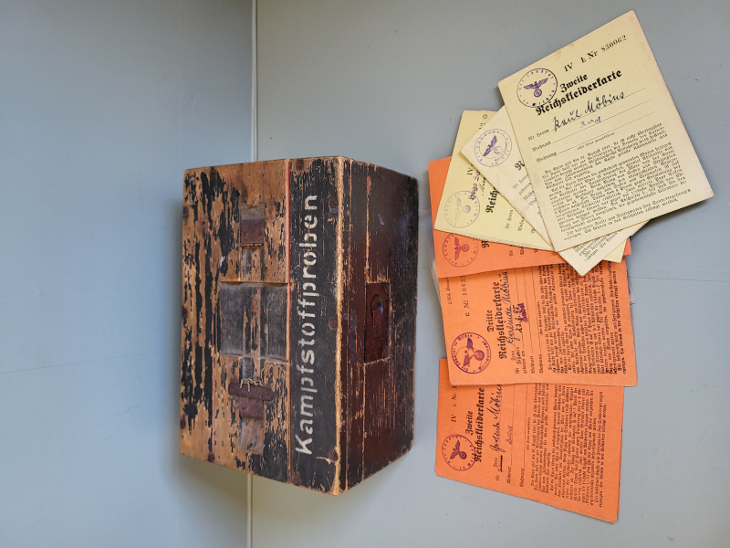 - Original Reichskleiderkarte aus Jahre 1940 , zusammen 6 Stück . Karten Stammen von der Gleiche Soldat wie die Kiste