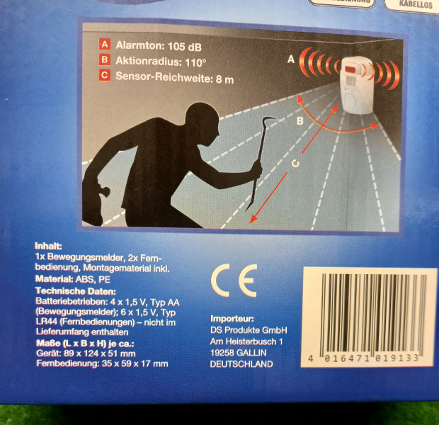 Folgender Artikel wird angeboten. Es werden 2 Stück geliefert, entgegen der Beschreibung auf dem Paket. Also 2 neue Bewegungsmelder, 2 Halterungen und 4 Fernbedienungen. Sehr lauter Mobiler Alarm, 105 dB, mit Bewegungsmelder und Fernbedienung. Ideal zur Überwachung von Wohnwagen, Waffenschränken usw. Mit Einschaltverzögerung um den Raum in Ruhe zu verlassen. Erhaltung siehe Fotos. https://ibb.co/G31cr7WN"> https://ibb.co/MyhcvTbD"> https://ibb.co/sv4sTDMh"> https://ibb.co/Qv3tHxcH">
