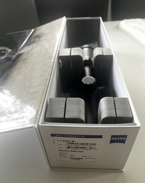 Verkaufe das auf den Fotos ersichtliche Zielfernrohr Zeiss Conquest V6 1,1-6x24 M im Originalkarton. Leuchtabsehen siehe Foto