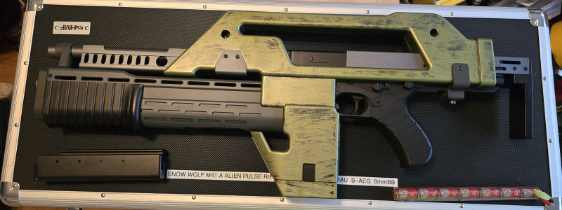 Hallo, biete hier eine Snow Wolf alien Pulle rifle aus dem Aliens Film in der used Optik version in 6mmBB in der AEG version. Fullauto. Die waffe ist aus Kunststoff mit metall Teilen im Inneren. hat ein sattes Gewicht. Es funktionierte beim letzten test vor ein paar monaten einwandfrei. Waffenkoffer ist inklusive, Batterie für die schussanzeige ist auch dabei, anleitung und akku ist dabei plus ladegerät. Der Zustand ist absolut top! Alles funktioniert einwandfrei. Wie neu.