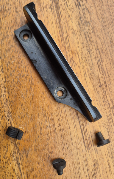 Ältere Schiene für eine Zielfernrohrmontage, komplett mit Schrauben.